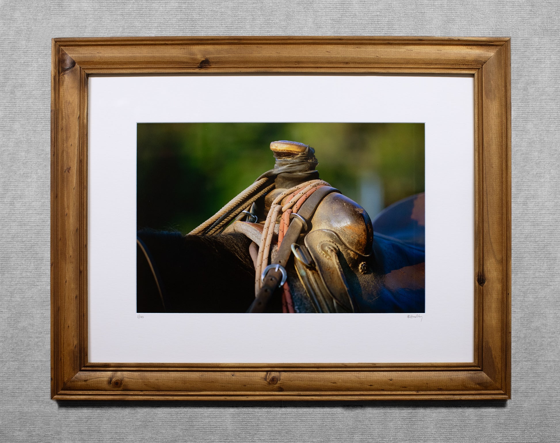 A Cowboy's Saddle - 12x18 matted Lustre print in an 18x24 Rustic wood frame.