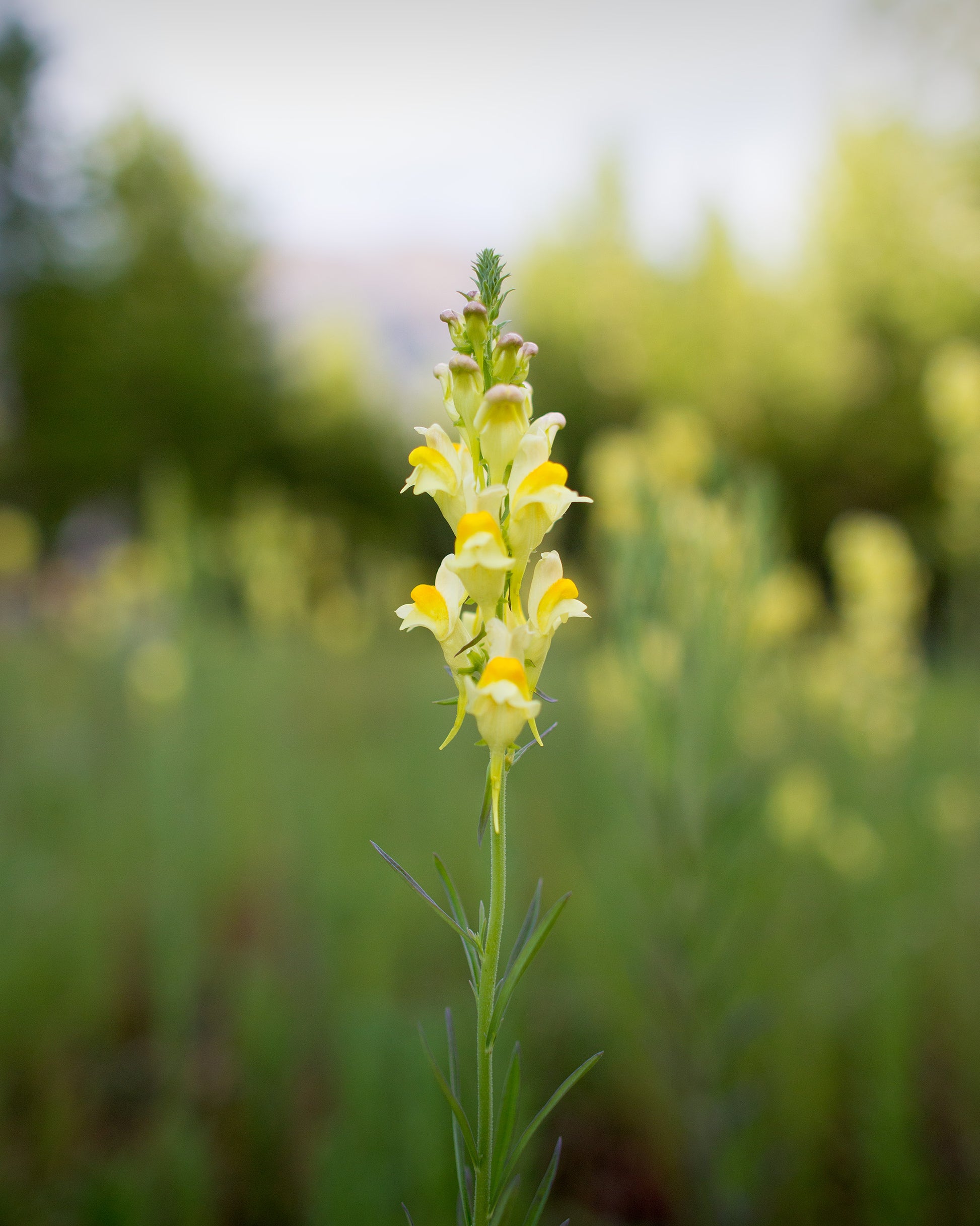 We stumbled upon this beautiful field of Butter and Eggs wildflowers while on a drive through the backroads near Big Sky, Montana in 2017. Montana was in full bloom while we were there and we were able to get so many wonderful wildflower shots on that trip. Finding a wildflower with the name Butter and Eggs is pretty awesome too.
