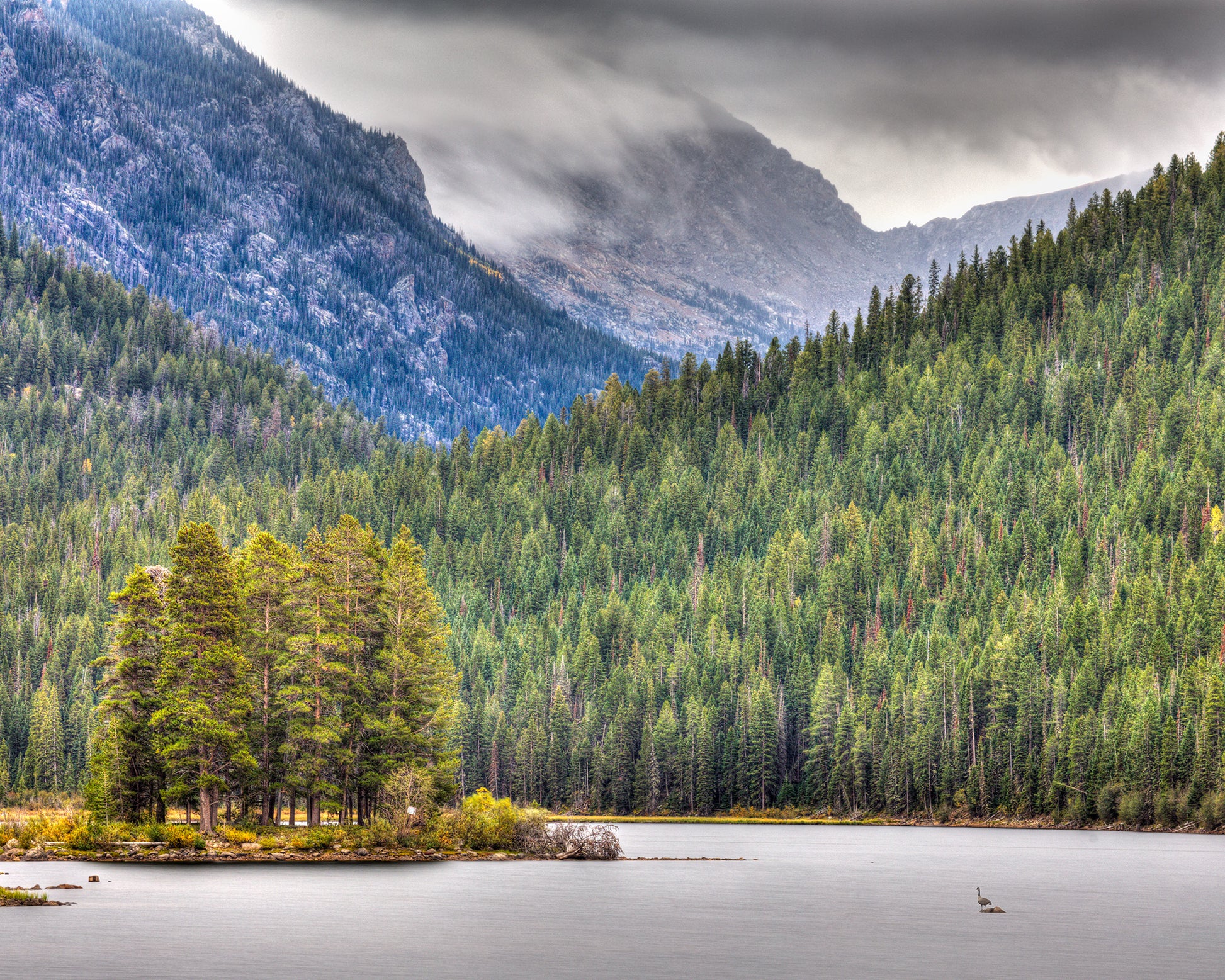 This was our first day of photography while on our Grand Lake, Granby Colorado adventure in the fall of 2022. This is Monarch Lake on a very stormy morning. It was just a couple of hardy hikers, a few fly fishermen and us silly photographers braving the conditions that chilly morning. More than once we had to pull back under a canopy of pines to escape the rains that came and went just as fast you could set the tripod.