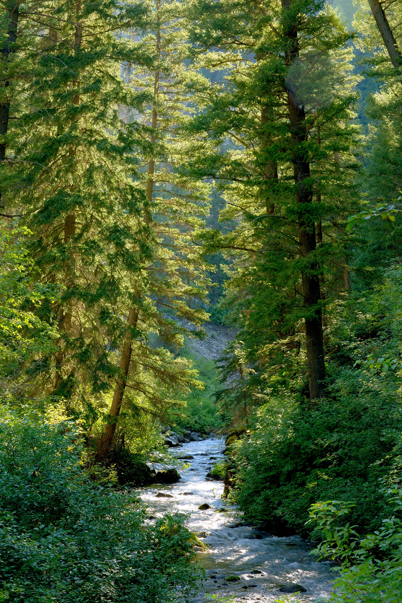 This beautiful stream was close to where our family camped out on our trip to Montana in 2017. Just an early morning stroll with my camera. I loved the way the sunlight backlit the trees and sparkled the water.