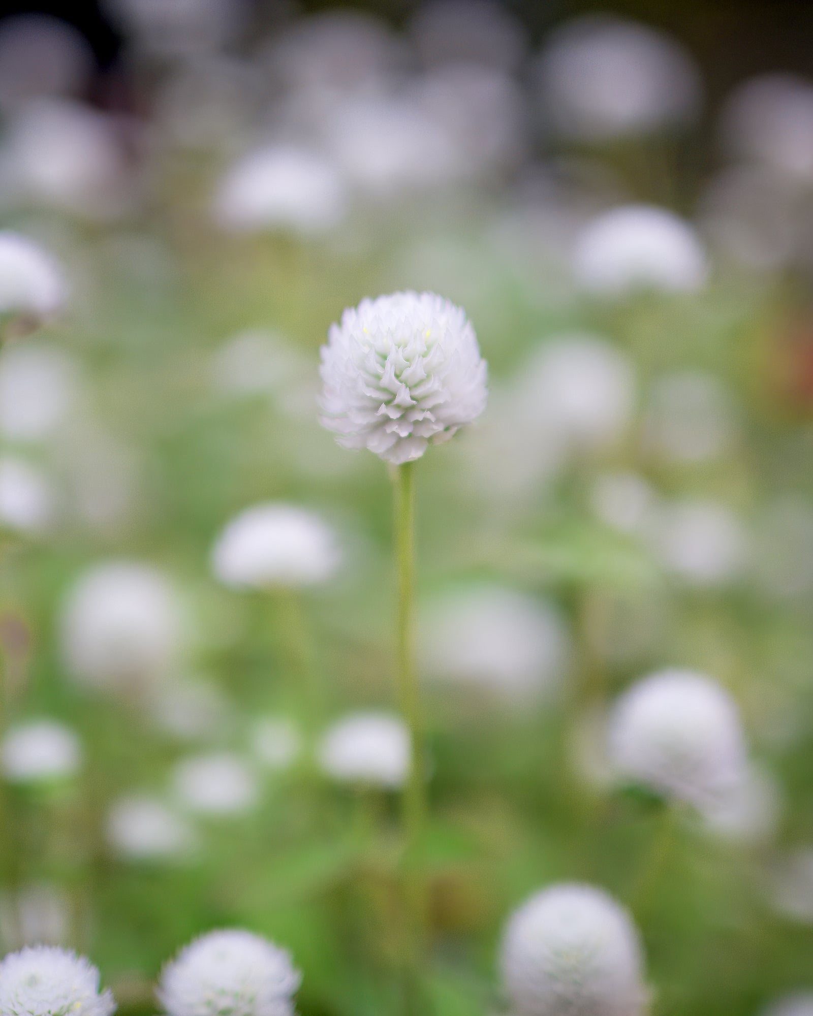 We shot this cool little flower at the Overland Park Arboretum on a late summer day. When I looked up the flower to see what it was, I was amused to see it called Ping Pong White, along with it’s more technical name, Gomphrena globosa. Made me think of Bill Murray in “Caddyshack”. I would have named them golf ball white. Anyway.. I love the very shallow depth of field in this shot. So subtle.