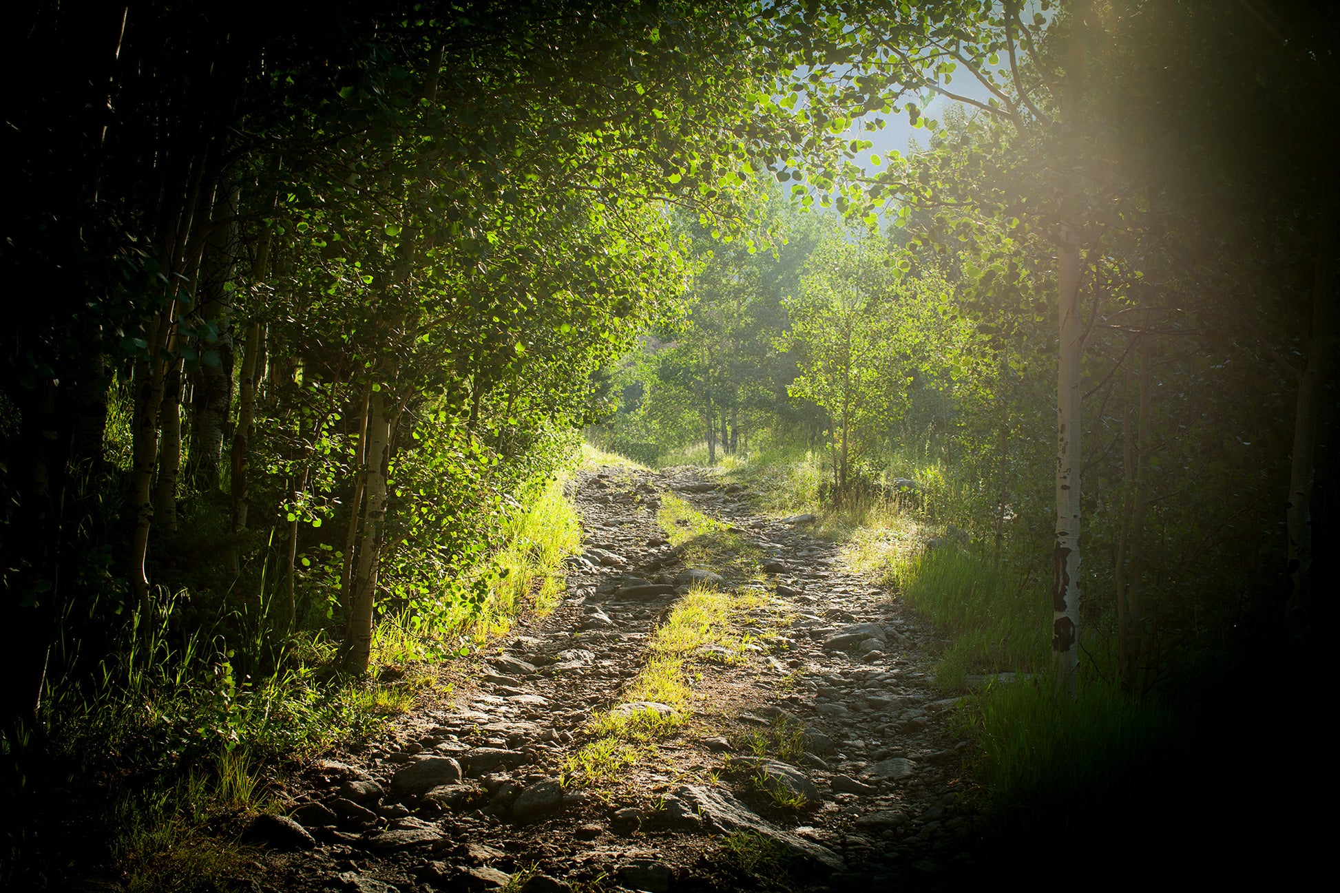 In 2014 we decided to hike to the summit of Pagosa Peak near Pagosa Springs, Colorado. We began our hike before sunrise. As we rounded a bend on this old rugged 4X4 road, the sun made it’s first appearance over the mountains to the east and lit this scene perfectly. You can read the story of this magical day and trip in our blog, Blog, A thin Place.